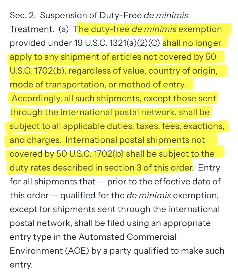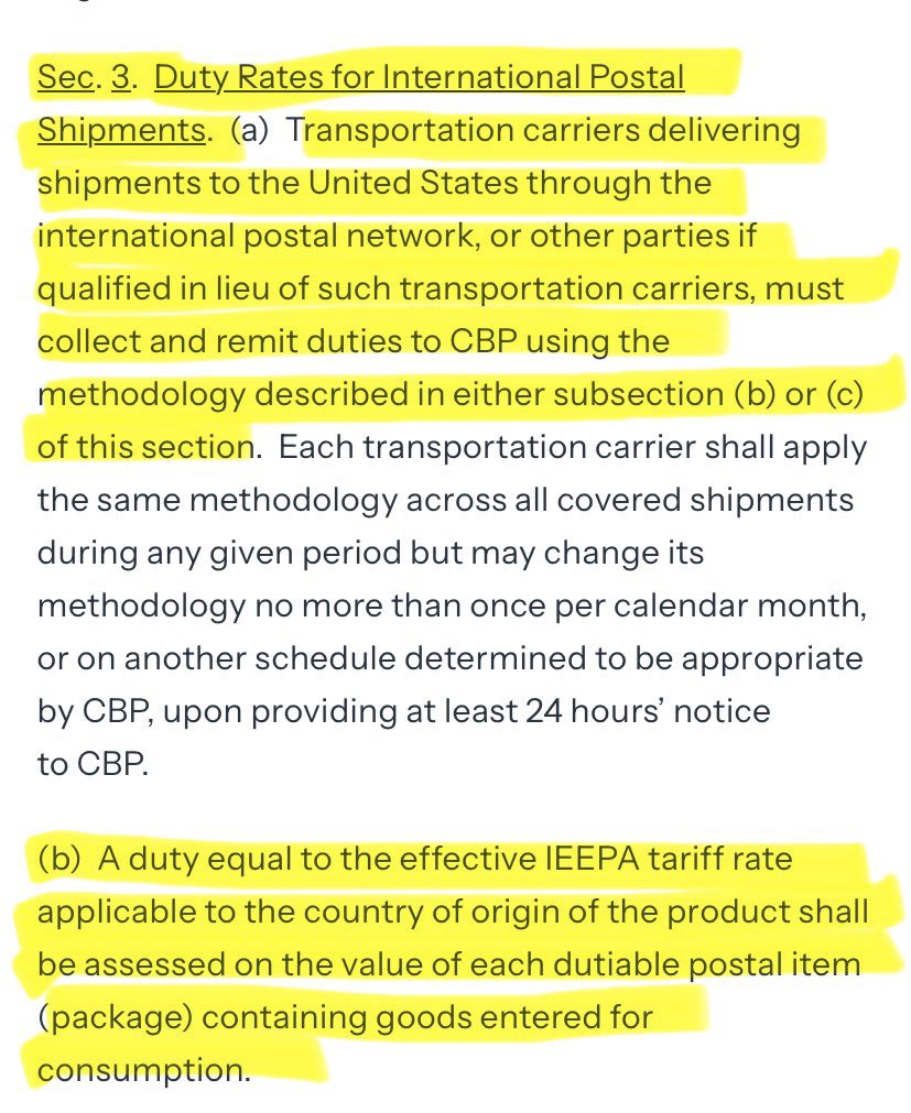 1) This executive order means you will pay money to the US government to receive packages you order that ship to you from other countries. Like off of Etsy, and so forth. Now, in this thread, I have the fees the feds are going to charge you. Let’s begin⬇️