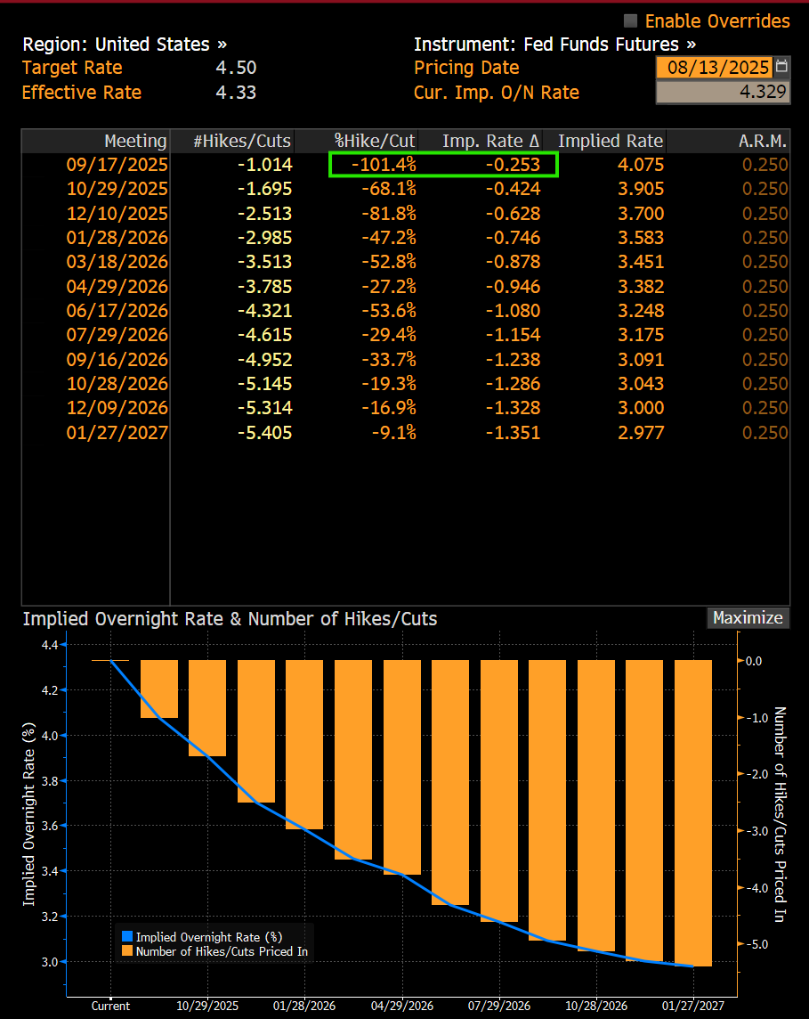 The forward curve is currently pricing a 100% probability of a rate cut in Sept. This isnt sentiment or some narratives. This is actual dollars that are betting on this.