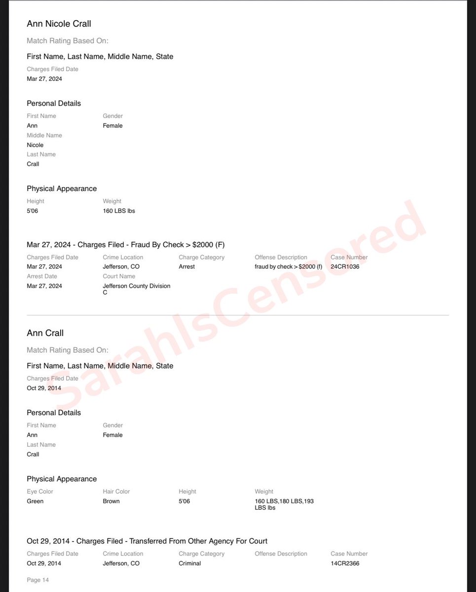 NOW - Ann was released from prison recently and almost immediately began committing fraud again. In March, 2024, she was arrested for forgery. In February 2025, she was accused of forgery and was placed on a fugitive hold.