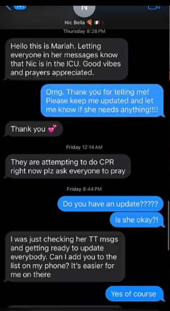 During a late night TikTok Broadcast hosted by a podcaster named “AFGBayBoy”, she was exposed as Ann Crall. An individual reached out to “BayBoy” and tried to convince him that “NicBella” was in ICU and not expected to survive. Then on Sunday night, “NicBella” appeared in the chat portion of a live and then promptly disappeared”. It was also revealed that Ann Crall owns an LLC in Colorado under the name of Bella Mia.