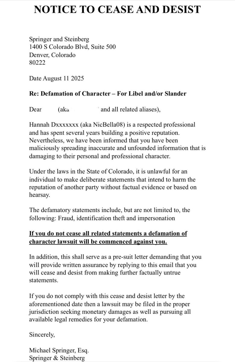 During “BayBoy’s” live, individuals began receiving cease and desist letters from Ann, clearly created by online sites and AI.