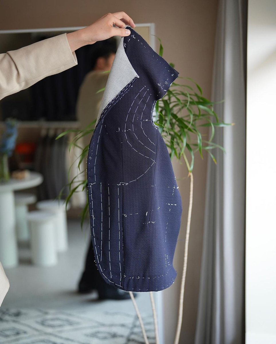 This process — which involves pad stitching, darts, and ironwork — means the tailor can create a distinctive silhouette that's not just the person's body. Pay attention to the shape of the shoulders, chest, and lapels. Even the sleeves have their own shape (they have volume)