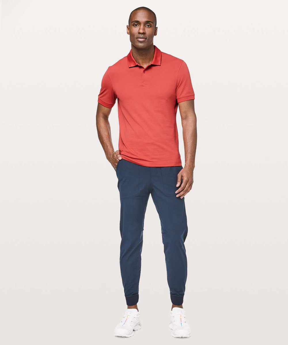 Last photo shows Lululemon's popular ABC pants, made from polyester. Hangs poorly