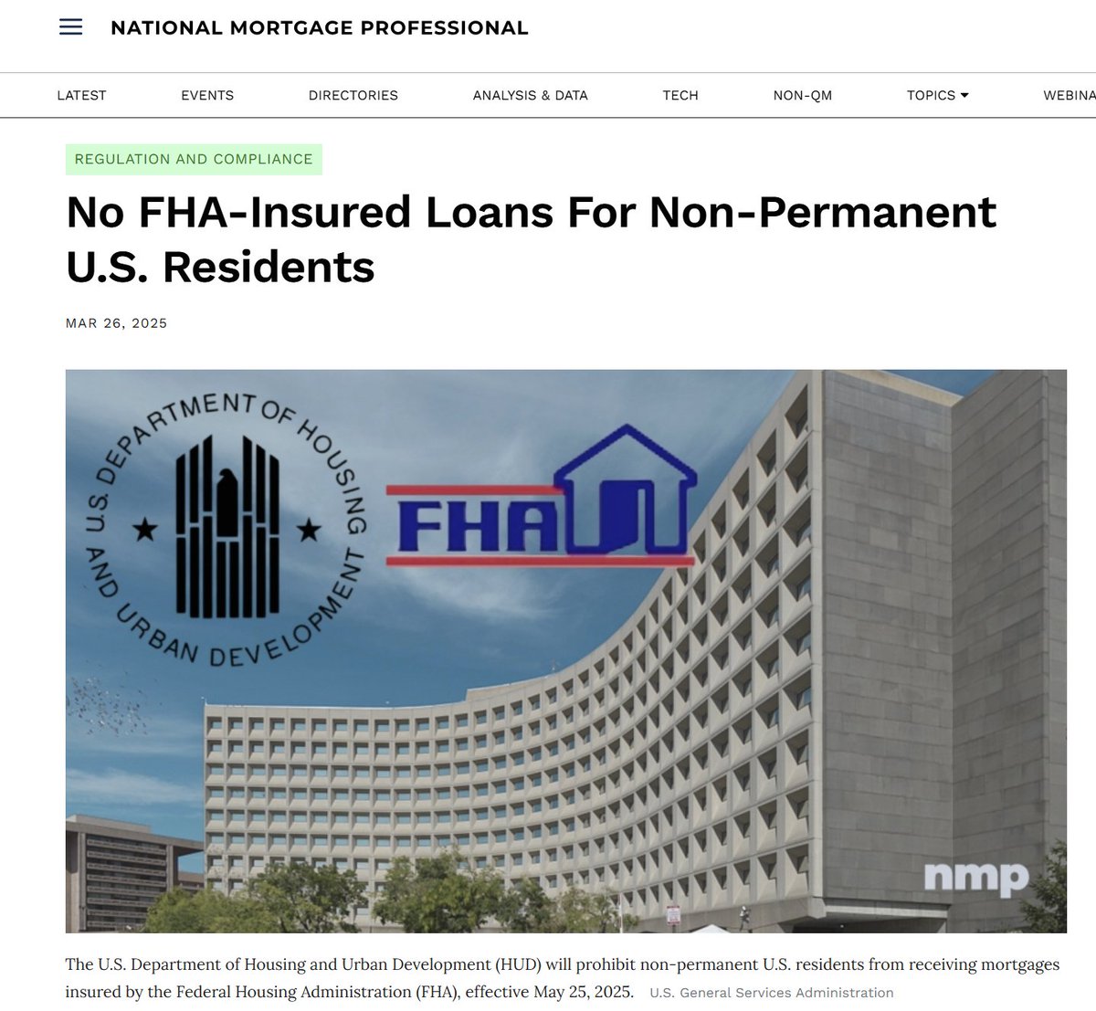 11) One thing to note, however, is that starting in May 2025 the Trump administration suspended the ability of non-permanent residents to apply for FHA mortgages.