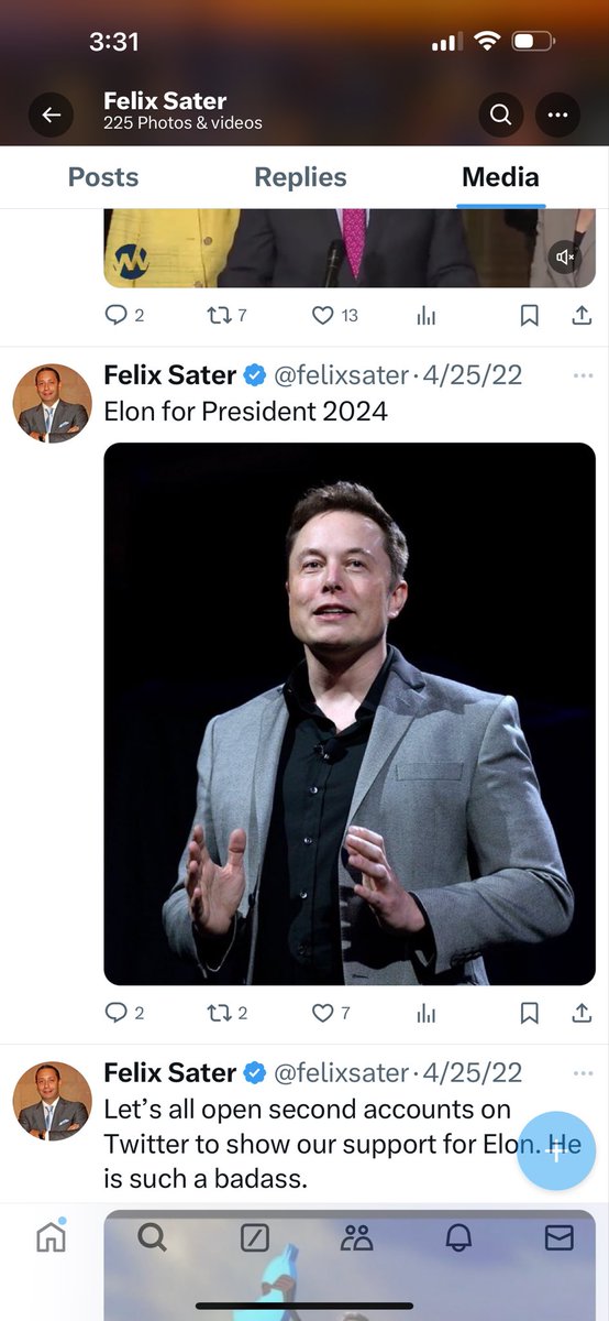 On 9/1/20 Artem posted the picture below. On 4/25/22 he reposted it with the comment about the constitution. Additionally, Felix Sater posted on 4/25/22. Elon had initiated buying Twitter on 4/14/22, just 9 days earlier.