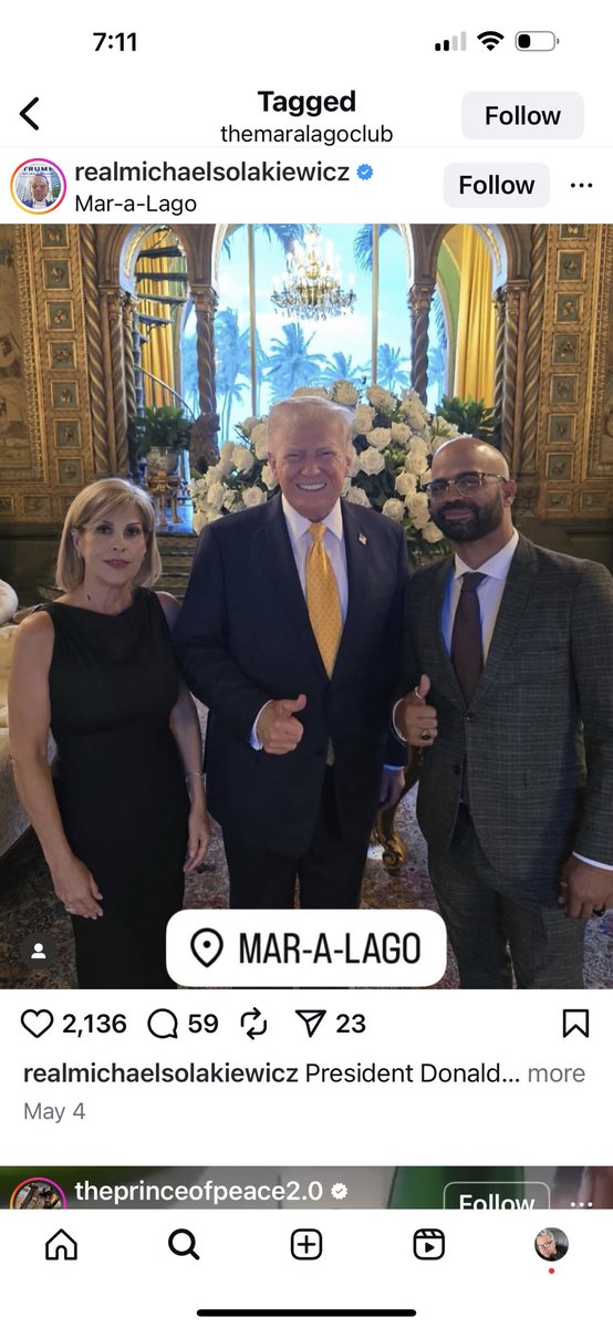 Also, if you’re bored, go to the Mar A Lago Club Page on Instagram. It’s not active but go to the tagged page. Scroll back at least to Election Day. It’s an awesome source of information. Like how Elon was just at Mar A Lago using his human shield again.