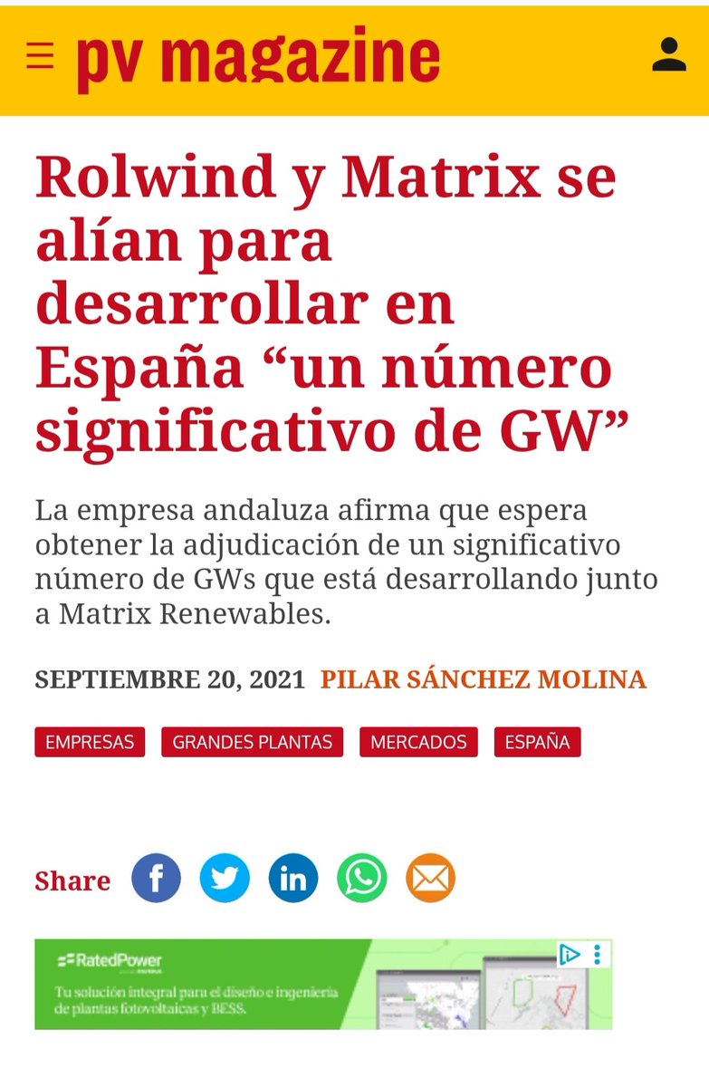 En 2021, la empresa ROLDWIND se asocia con MATRIX RENEWABLES (sede en Madrid)