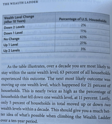 In @dollarsanddata's wealth ladder book, the percentage of households that go up 2 levels in 10 years is 3%. I was able to go up 3 levels in under 7 years by following the above.