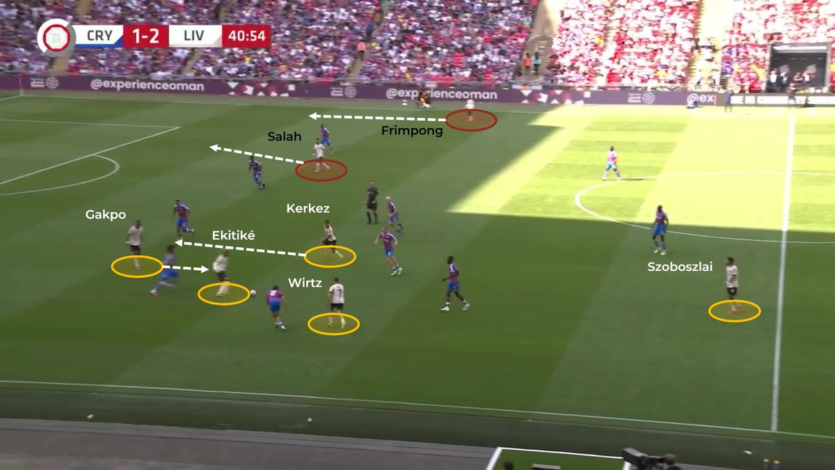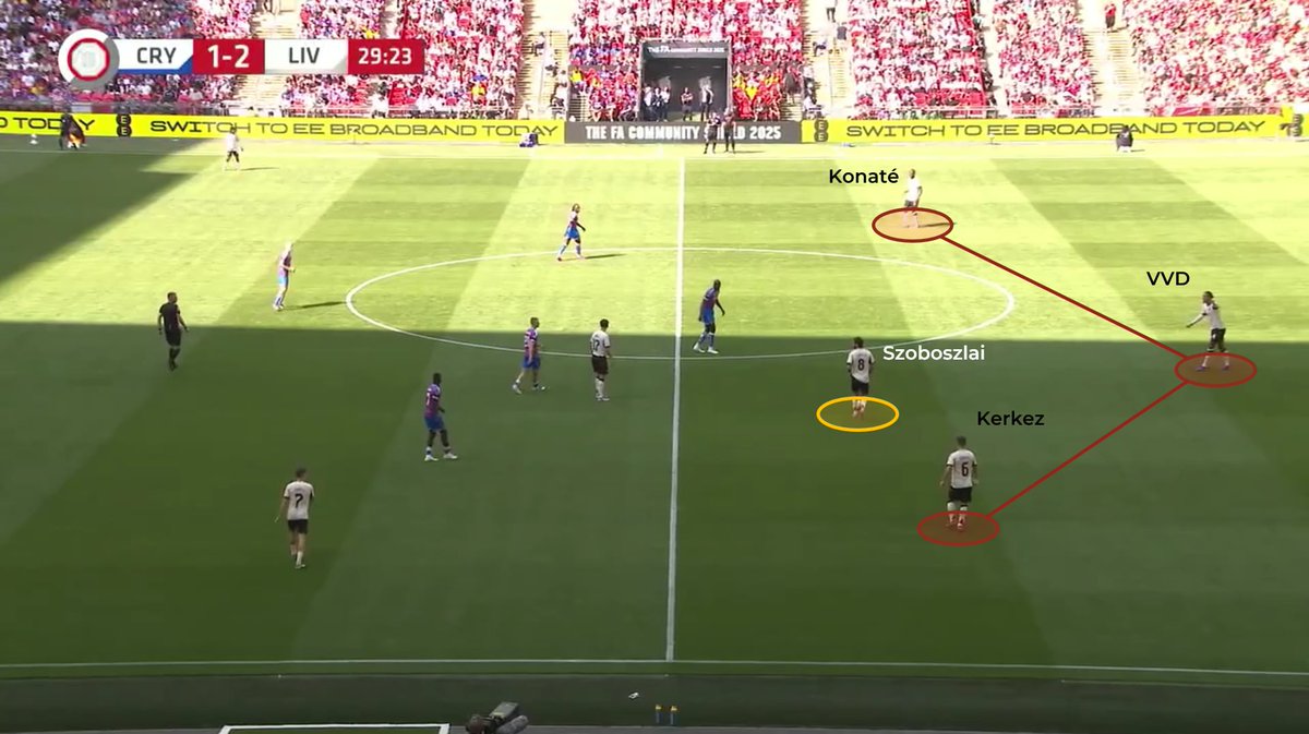 He stayed much deeper than Frimpong on the right side of the pitch vs CRY but I think when Slot finds the right balance, Kerkez will get the licence to move forward and deliver dangerous crosses from more advanced positions. 👁️