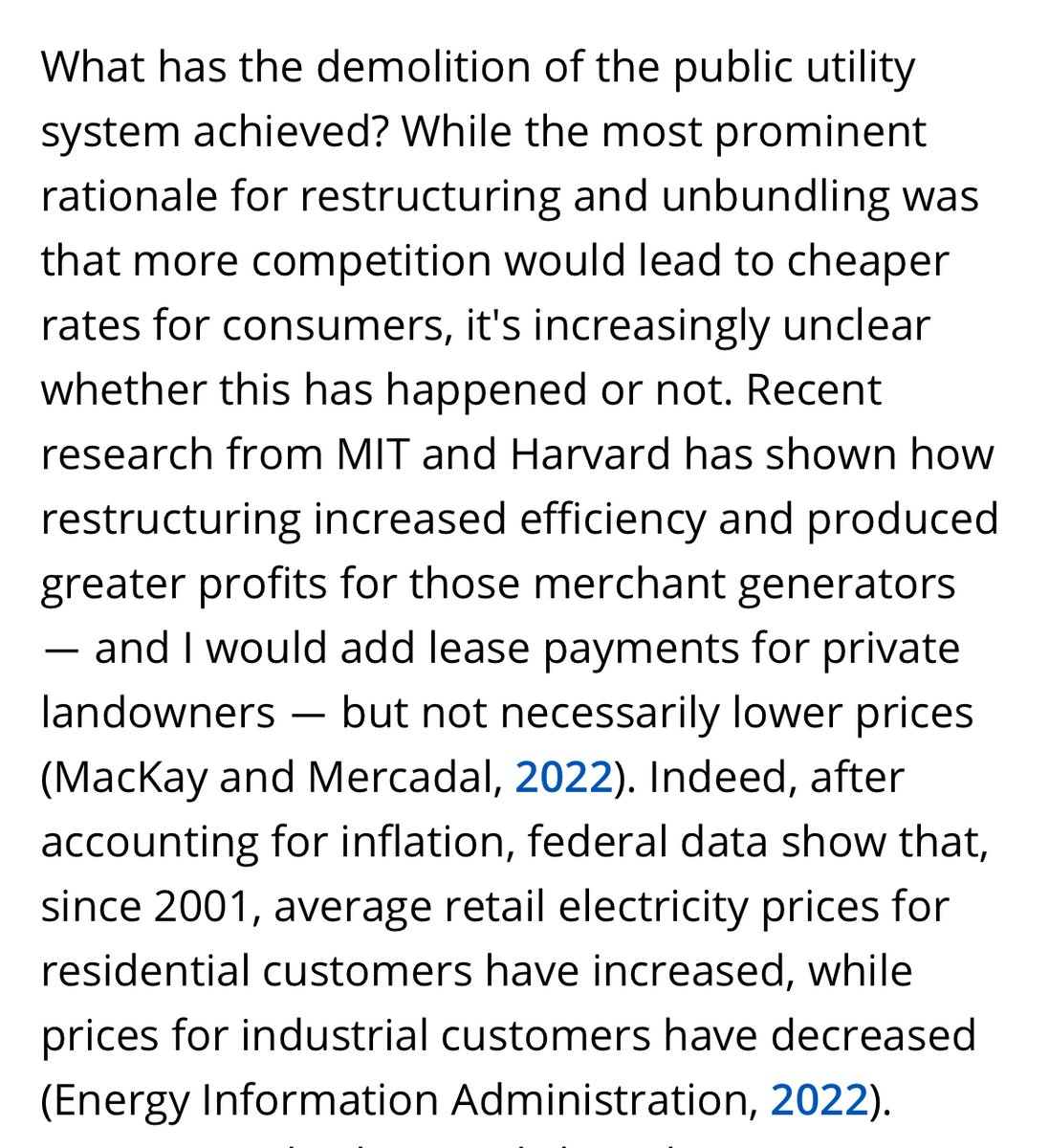 So what has deregulation got us? Not necessarily cheaper electricity. The main result? New centers of private wealth accumulation via renewable capital and rents. 14/x