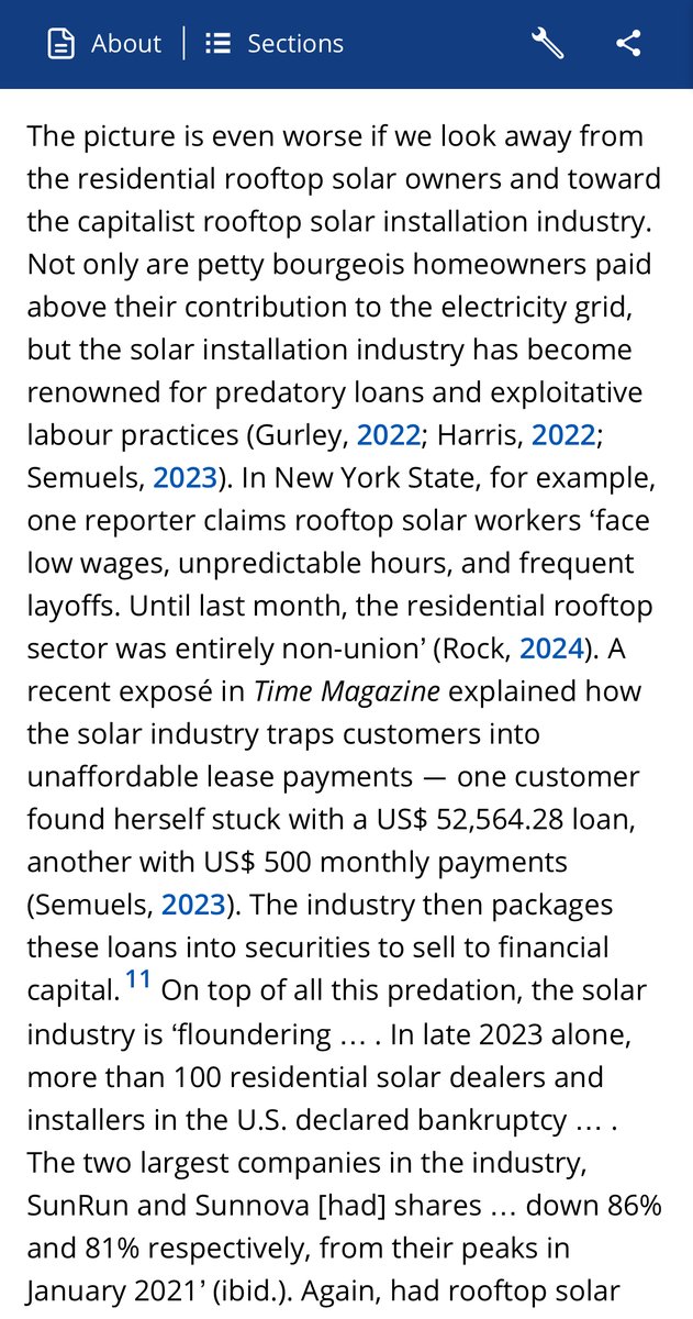 But homeowners≠capital. This model also relied on a new form of renewable capital: rooftop solar installation companies that are renowned for harsh labor practices and predatory loans.