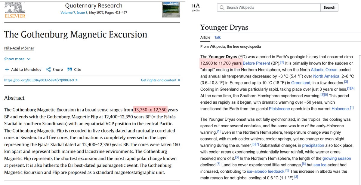 The Gothenburg Geomagnetic Excursion is the obvious trigger for the Younger Dryas rapid cooling, the collapse of the ocean currents, and the mass extinction event 12,000 years ago! (2/7)🧵