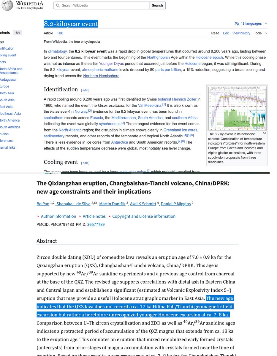 So, another geomagnetic excursion occurred roughly 7,000–9,000 years ago. (3/7)🧵