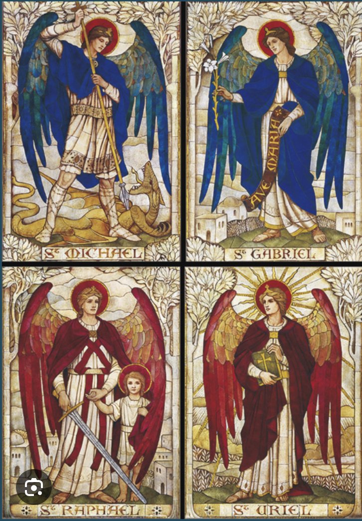🖼️ Mosaics of the four archangels on the east wall in the chancel, St John's Church, Warminster. en.wikipedia.org/wiki/St_John%2…