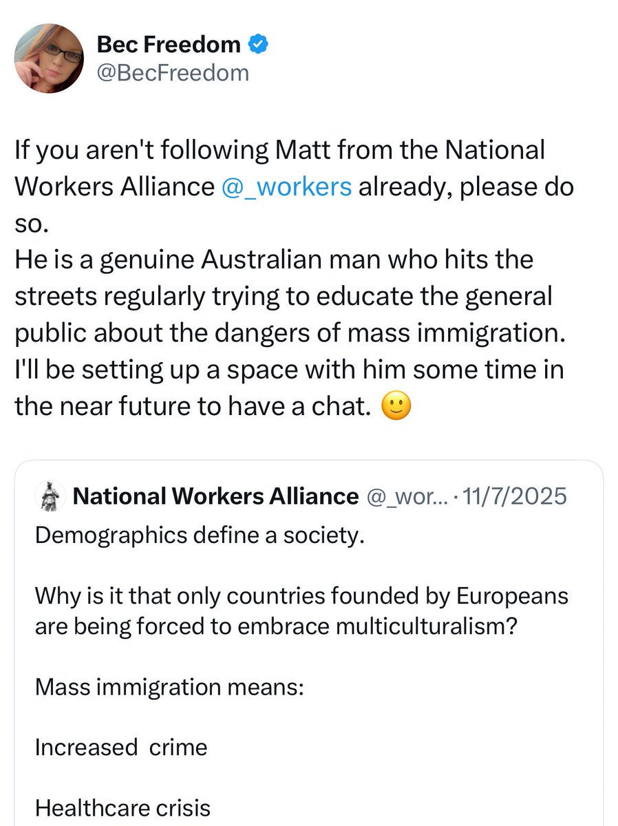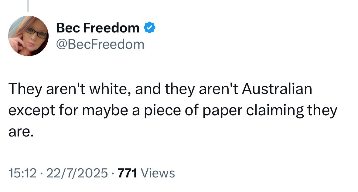 1. Bec Freedom, who’s one of the organisers behind the 31 August “anti immigration” rally claims she’s not a racist & that any recordings of her making statements to the contrary have been taken out of context
