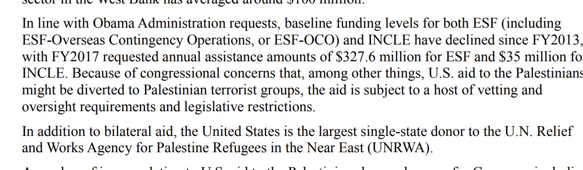 A 2016 Congressional report shows the extent of the US support for Palestine. In it, the US is the single largest state donor to UNRWA. The US also provided money directly to Palestinian Authority, although it was well aware that PA funded questionable activities.