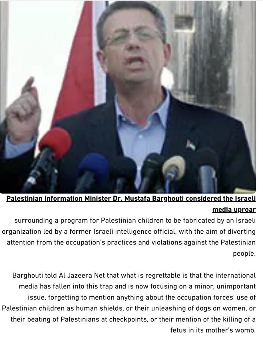 Note the name of the Palestinian Information Minister below who denounced the criticism - Mustafa Barghouti.