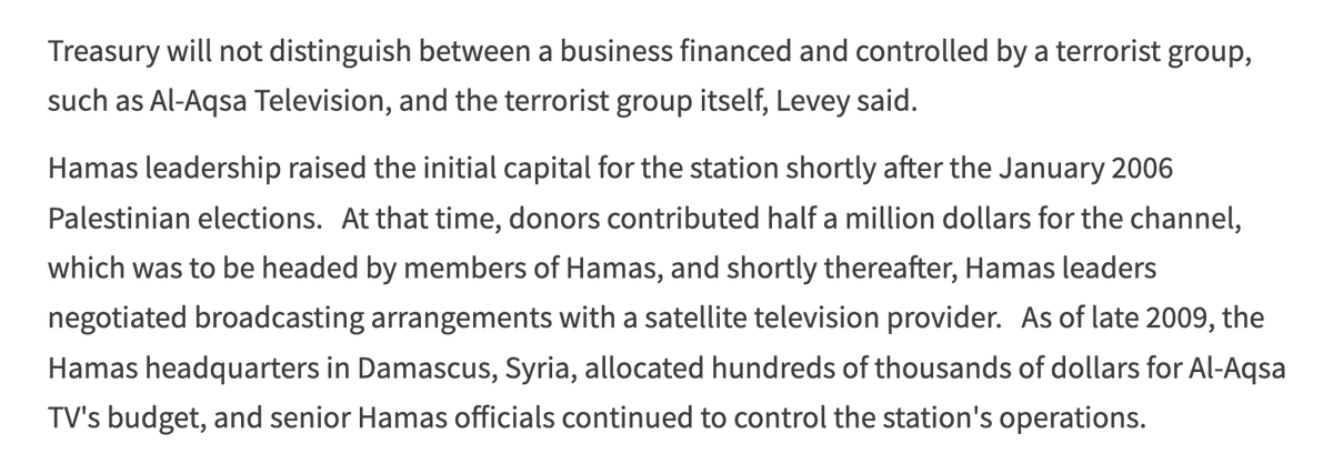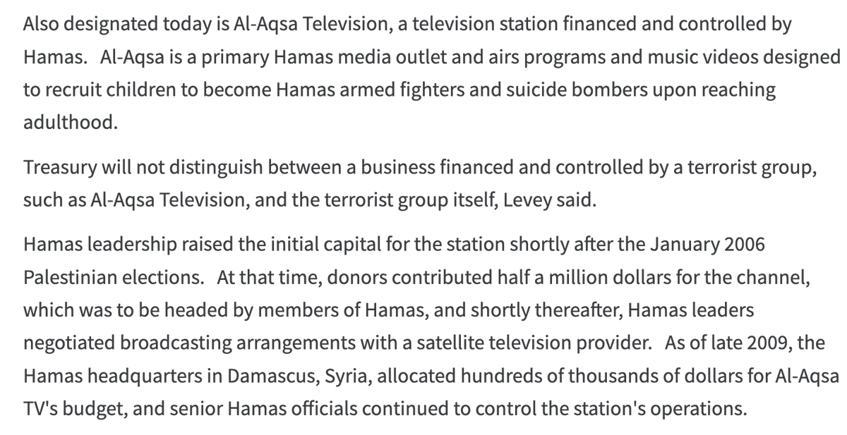The show was produced by Al-Aqsa TV, strictly controlled by Hamas and designated a terrorist group by US Treasury in 2010.