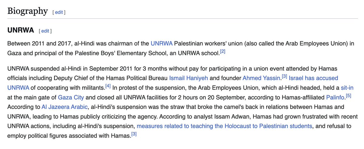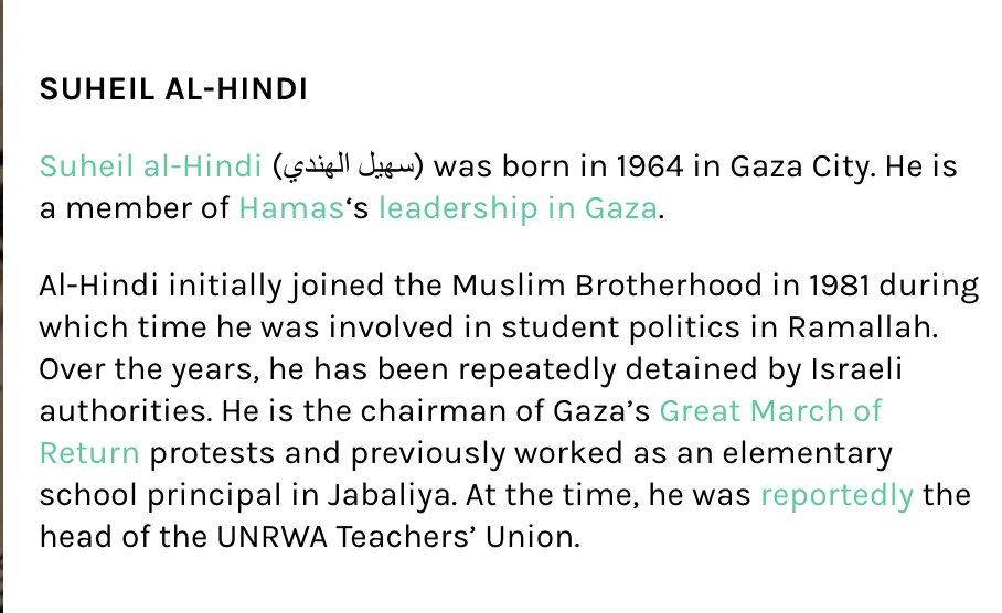 The overlap between Hamas and UNRWA goes deep. For example, Suheil Al-Hindi is a member of Hamas Politburo -- while being a principal of UNRWA school and head of the UNRWA Palestinian worker's union.