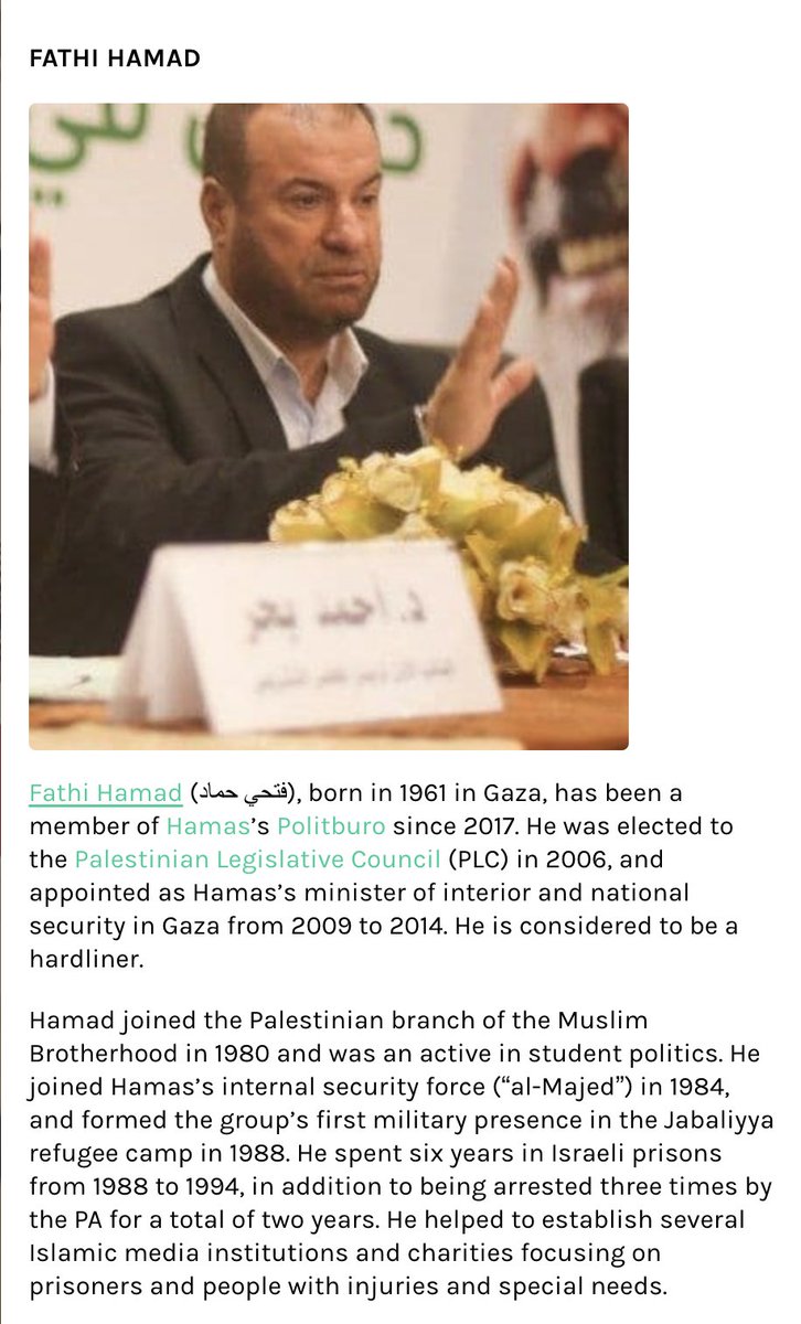 Fathi Hammad, who oversaw the Al-Aqsa TV network during the run of Tomorrow's Pioneers, ia a member of Hamas Politburo, positioning him as one of the most powerful Hamas politicians.
