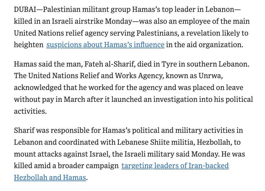 Another infamous instance of overlap was when Fateh al-Sharif, UNRWA school teacher, was found to have been responsible for Hamas' political and military actions in Lebanon and was working with Hezbelloah to attack Israel.