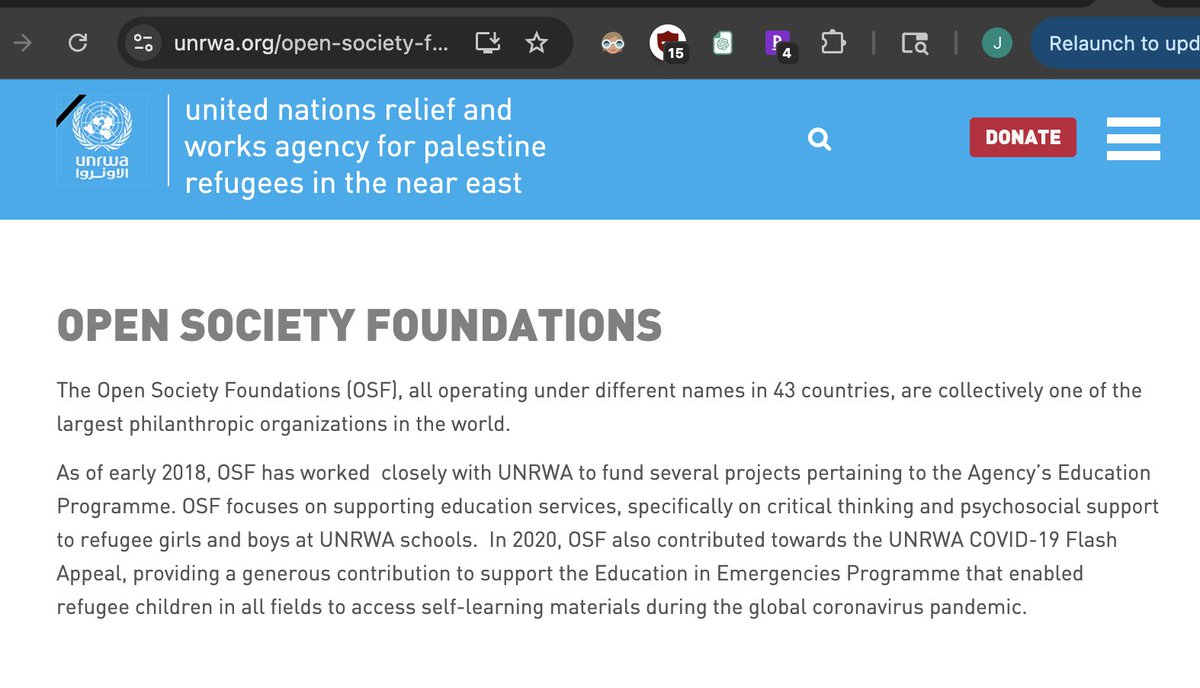 One of UNRWA's partner organizations is Open Society Foundations.