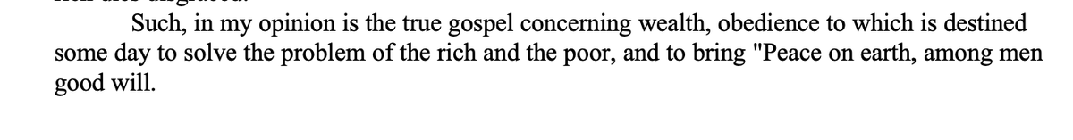 In 1899 he published the "Gospel of Wealth" which formed his moral foundation for his philanthropy.