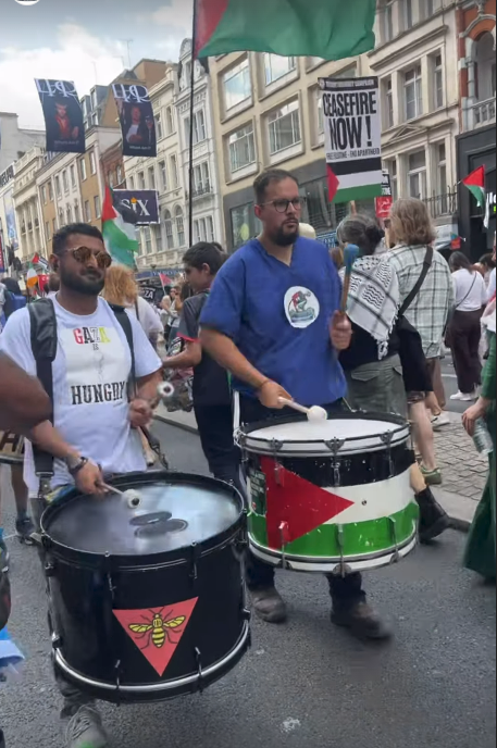 The Green Party too are loyal marchers. This is where you will find the Hamas atrocities supporter Mothin Ali.
