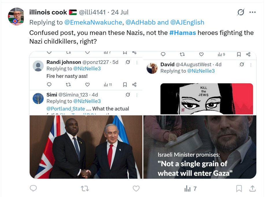 Hamas are heroes. So are Iran, Hezbollah, and the Houthis. Israelis are Nazis. Simple.