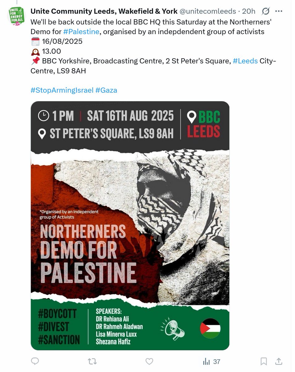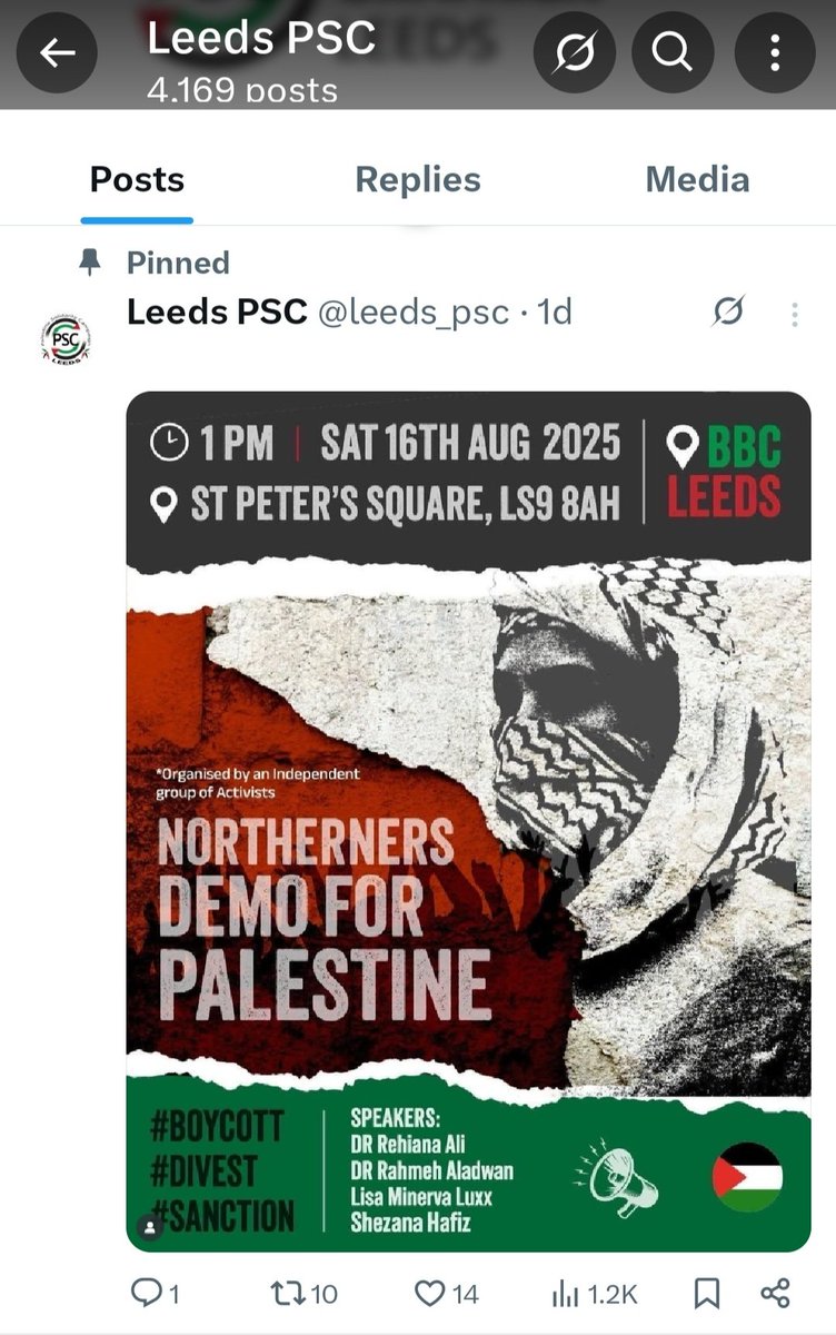 Note too the backing of the "Palestine Solidarity Campaign". It has abused Leeds with hate marches for terrorists almost every weekend since October 2023. 2/8