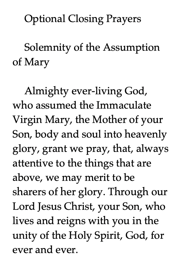 Almighty ever-living God, who assumed the Immaculate Virgin Mary, the Mother of your Son, body and soul into heavenly glory, grant we pray…