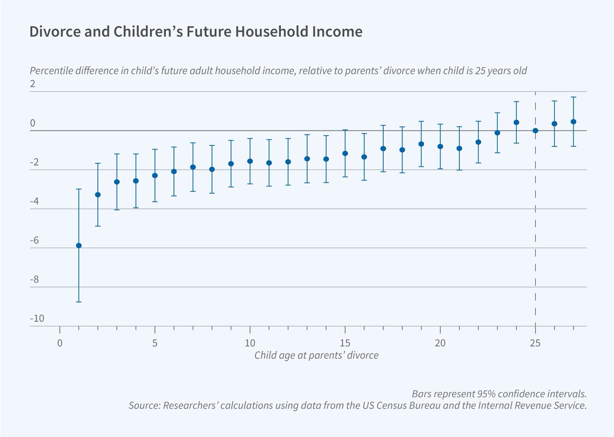 This is a great way to visualize the effect of divorce on children's success as adults🧵