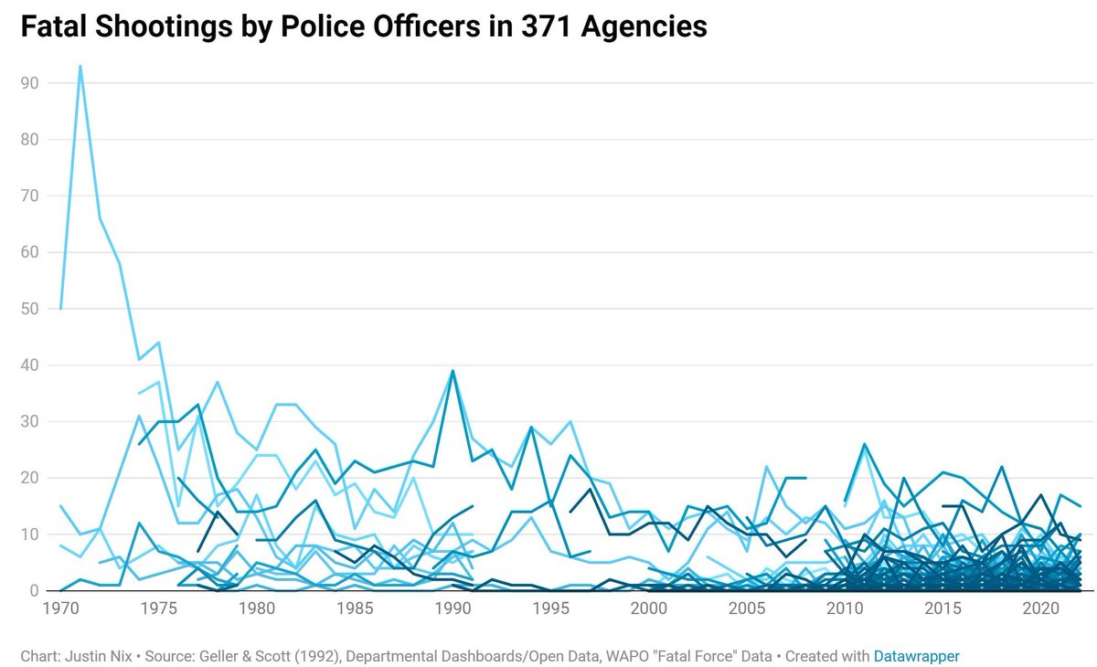 Or consider police shootings. They're way down, but public interest is way up.