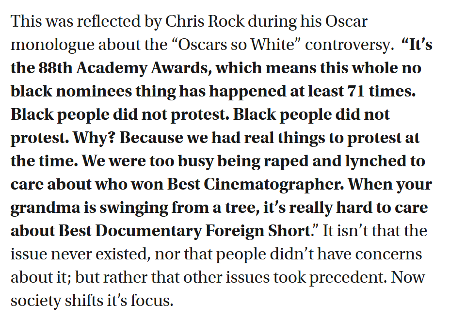 If you need a real-world example, consider the concept of "microaggressions": with less racism, people have to invent it.