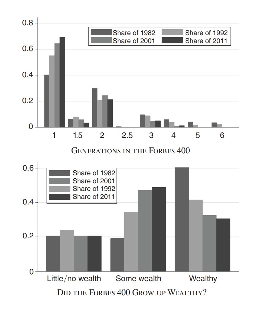 They're increasingly likely to be self-made men, but as a society, we've become increasingly likely to be worried about their unearned privileges and whatnot, when the truth is, we've been moving away from that at a breakneck pace.