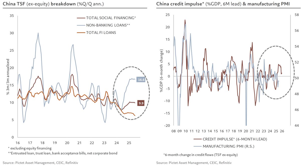Thanks to strong government bond issuance, the credit impulse remained broadly unchanged and still positive.
