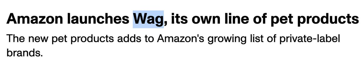 Promoted through its own listings and ads, Amazon hoped Wag would shift the market in its favor... Image