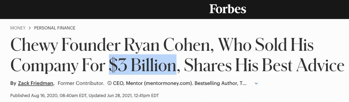 By 2017, Cohen sold Chewy to PetSmart for $3.35B in cash.