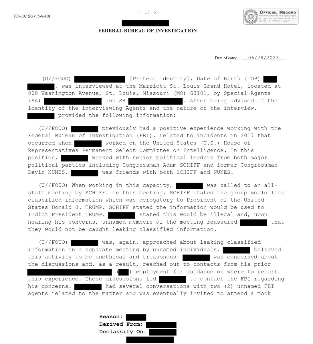 Speaking of leaks, @JustTheNews published a memo stating then-House Intel Committee Chair Adam Schiff said his team "would leak classified information ... to indict President TRUMP."