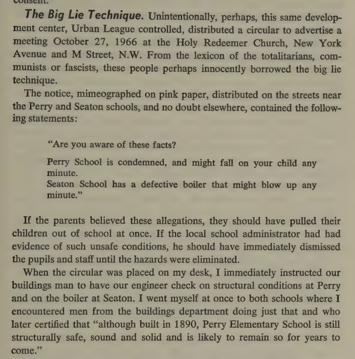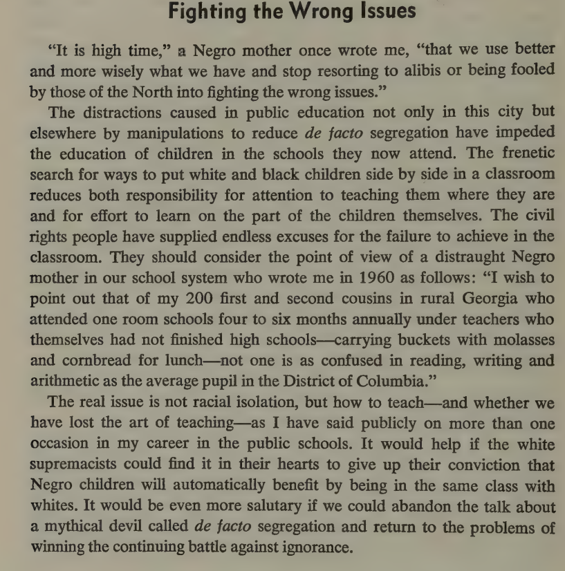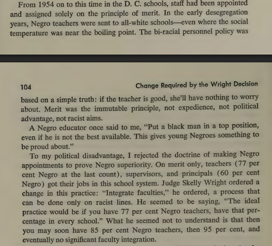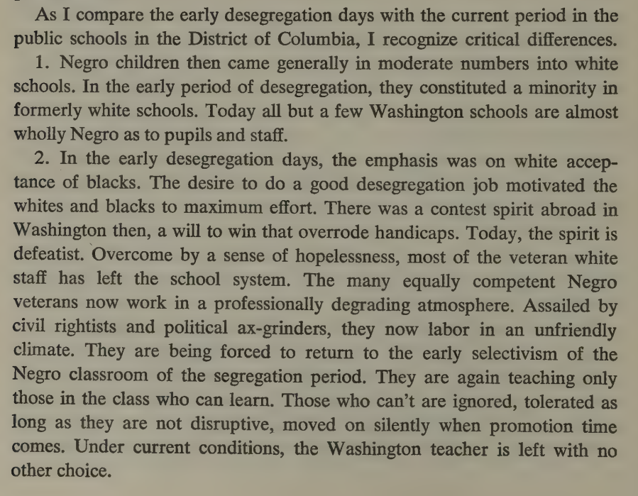 A few excerpts from the 1968 book "Danger in Washington," about 20 years experience in Washington DC public schools, serving as head of the system for decades. Had a much longer thread, but the site ate it. Author is a postwar liberal overtaken by the 60s Cultural Revolution.