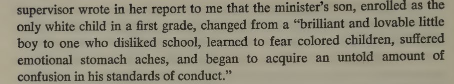 The "staggering" costs of desegregation, with white families both selling their homes and moving and paying for private schools. Also rumors, such as that black students were less advanced and had more STDs (both true, on average).