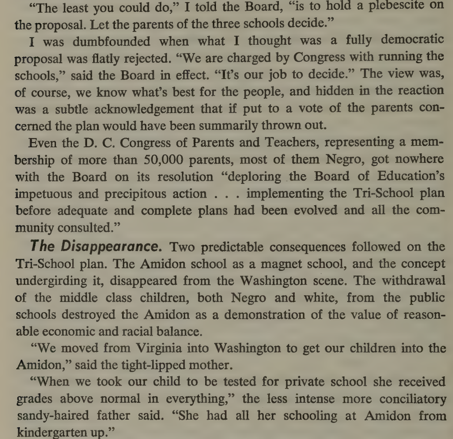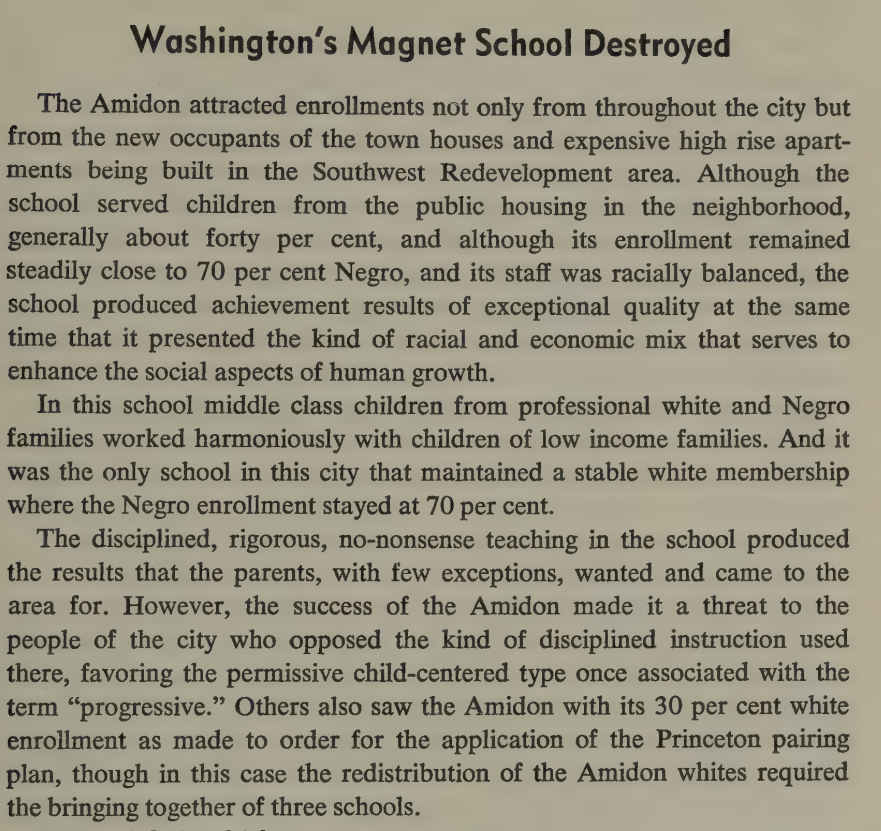 DC's only magnet school was also destroyed to redistribute its whites to eliminate 'de facto segregation.'