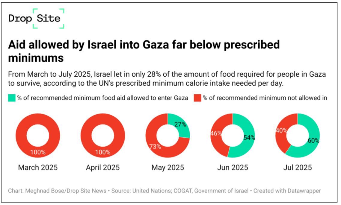 6/ Measured against the UN’s own minimums, Israel allowed in just 28% of the food required between March–July.