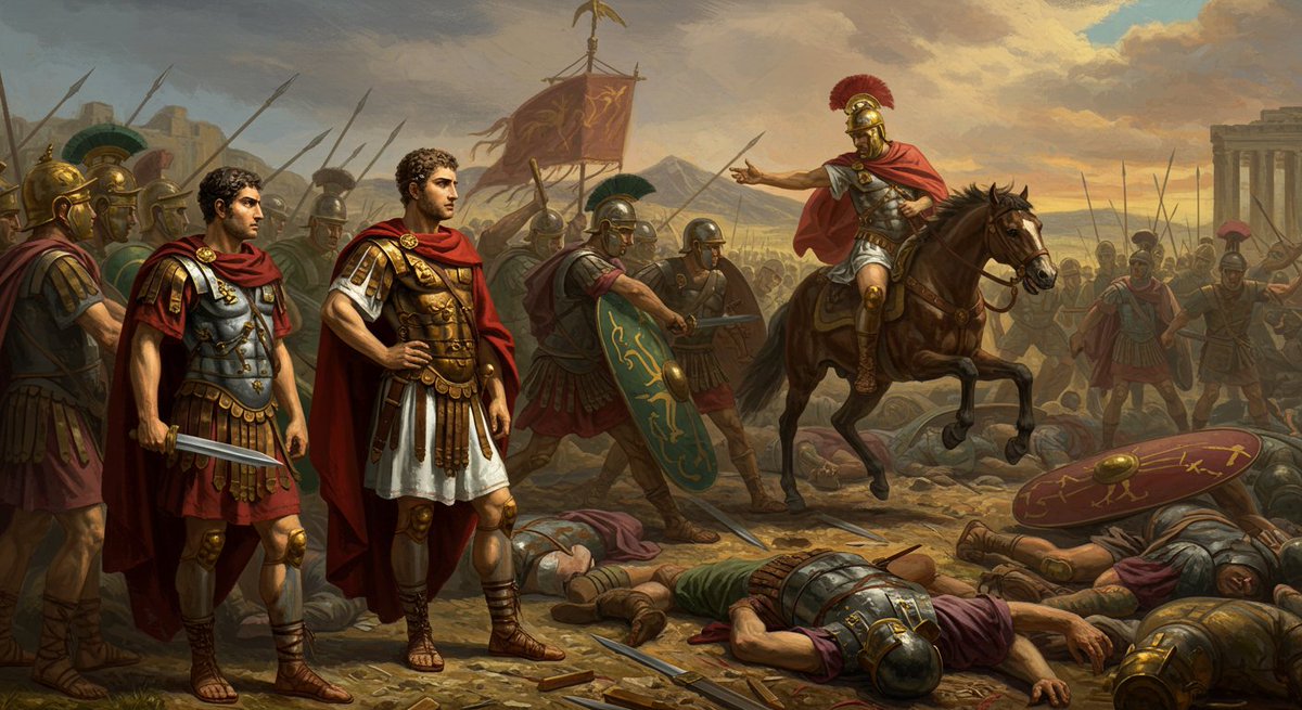 This is the story of the Second Triumvirate: a bloody alliance between a loyal general, a forgotten partner, and a teenage heir, who first avenged Caesar, then tore the world apart fighting over his legacy. 🧵