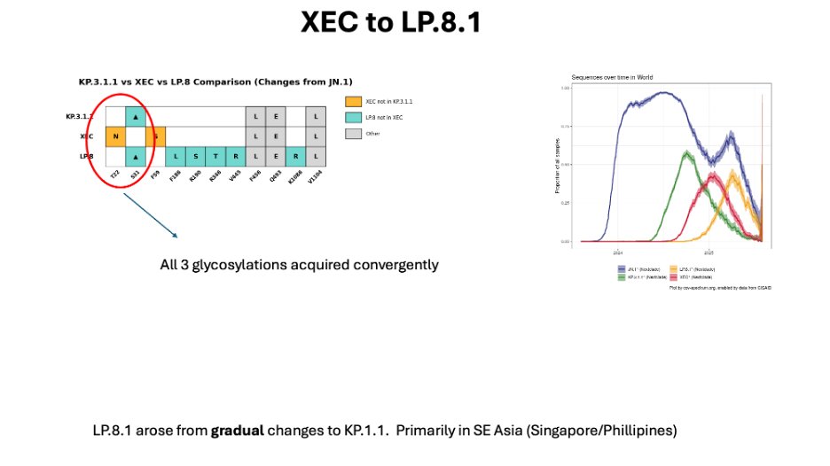 Next came LP.8.1, which was another JN.1 lineage that had been gradually evolving in SE Asia. It displaced XEC, but also did not become world dominant. 8/