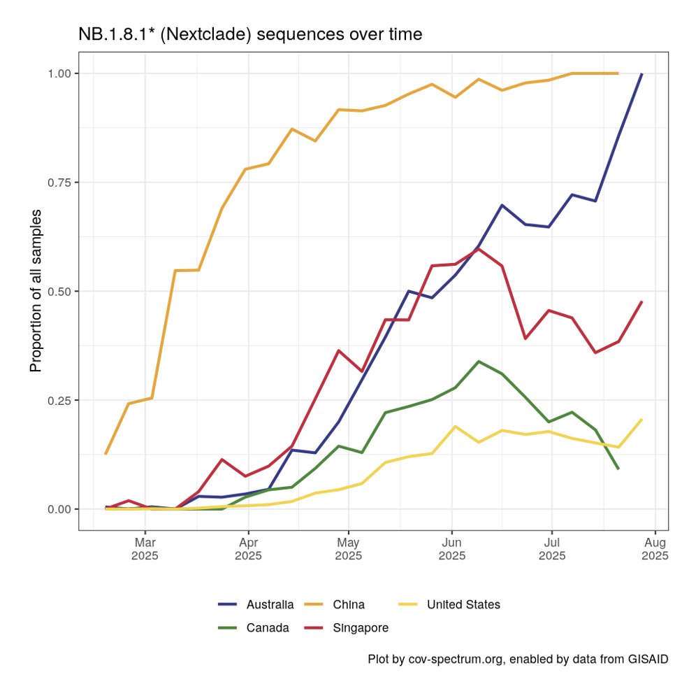 There is an odd disconnect though. NB.1.8.1 remains completely dominant in Australia and China. 12/