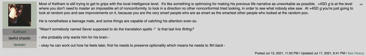 it should also be noted that famous Rationality community member Scott Alexander of Astral Codex Ten was also exposed for being into the race science/eugenics theory of "human biodiversity" around the time this fanfic was being written