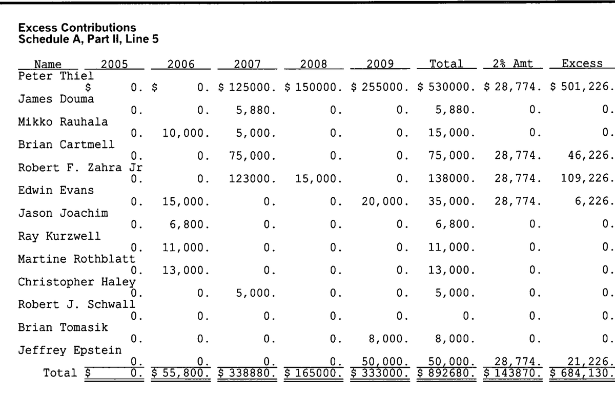 fun fact: Peter Thiel also once funded Eliezer Yudkowsky's non-profit back when he founded LessWrong! check out that last name on the list too