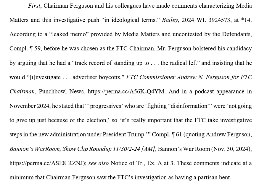 Finally, Judge Sooknanan claims it is "pretext" that the @FTC is concerned about advertiser boycotts. So statements concerned about boycotts both show "bias" and are also conjured pretext? Perhaps this pretzeled reasoning is ... pretext to give an assist to Media Matters? 15/