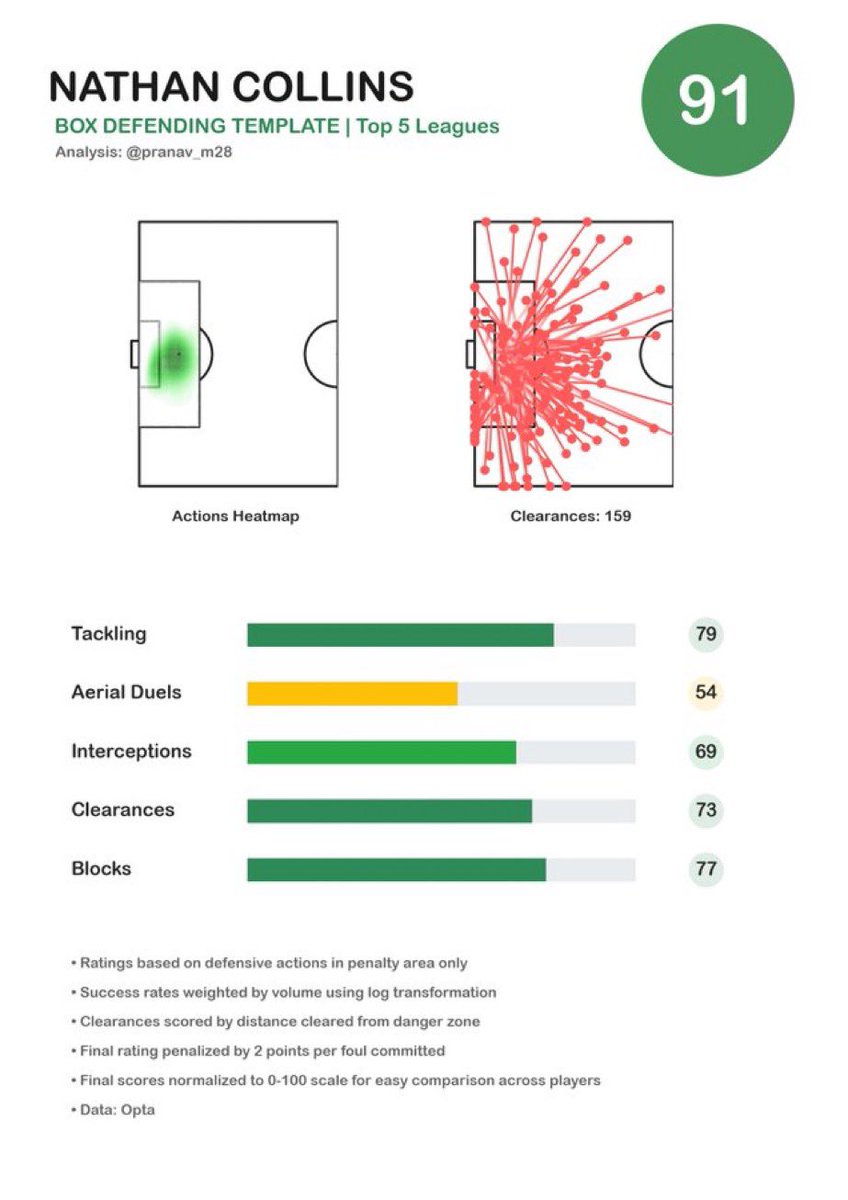 Collins flourished in a Brentford side comfortable in deeper and mid blocks, which translates well as a right-sided CB who defends the box, dominates set-plays, and handles direct play.Image